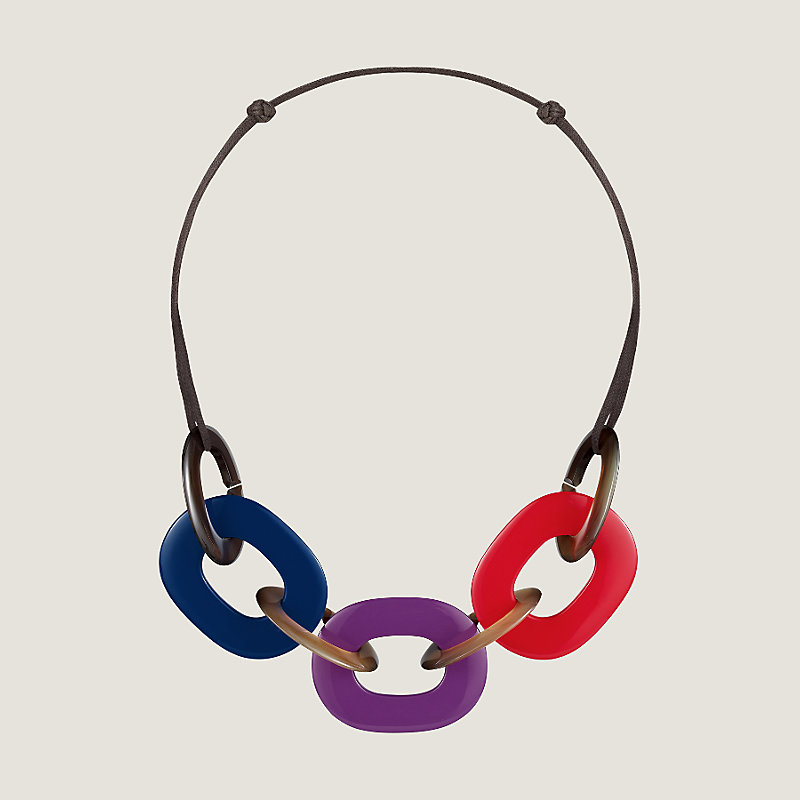 Hermes necklace in buffalo horn and lacquered wood, adjustable waxed cotton strap