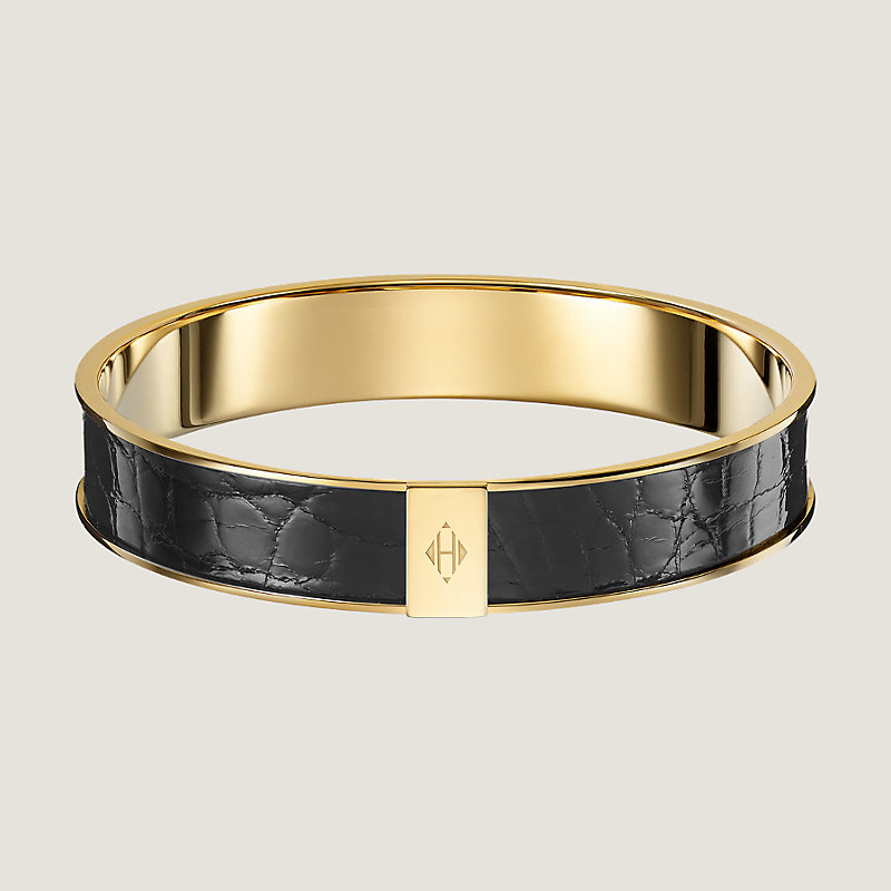 Hermes leather bracelet in smooth Mississippiensis alligator and gold plated metal