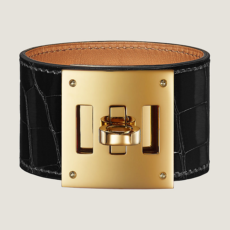 Bracelet in smooth Mississippiensis alligator leather with gold plated Kelly closure