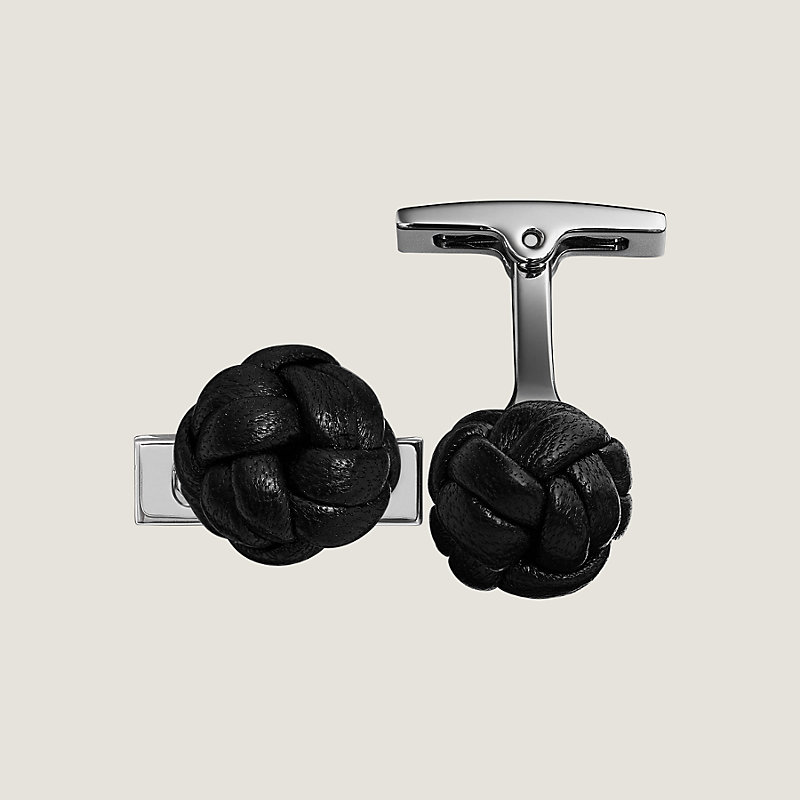 Hermes cufflinks in Swift calfskin and palladium plated metal