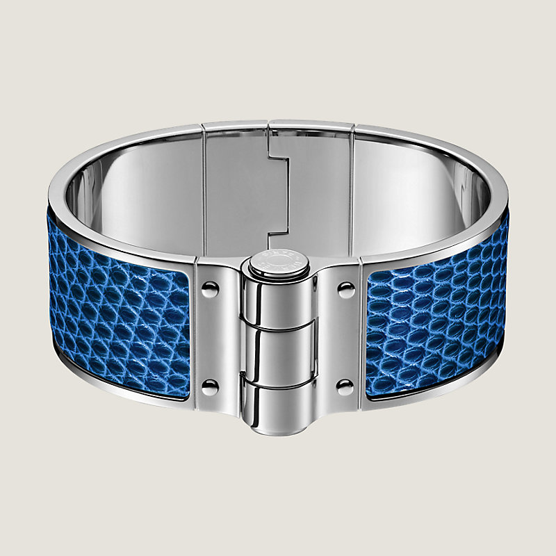 Hermes bracelet in polished Niloticus lizard leather, palladium plated hardware