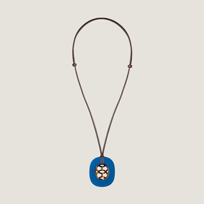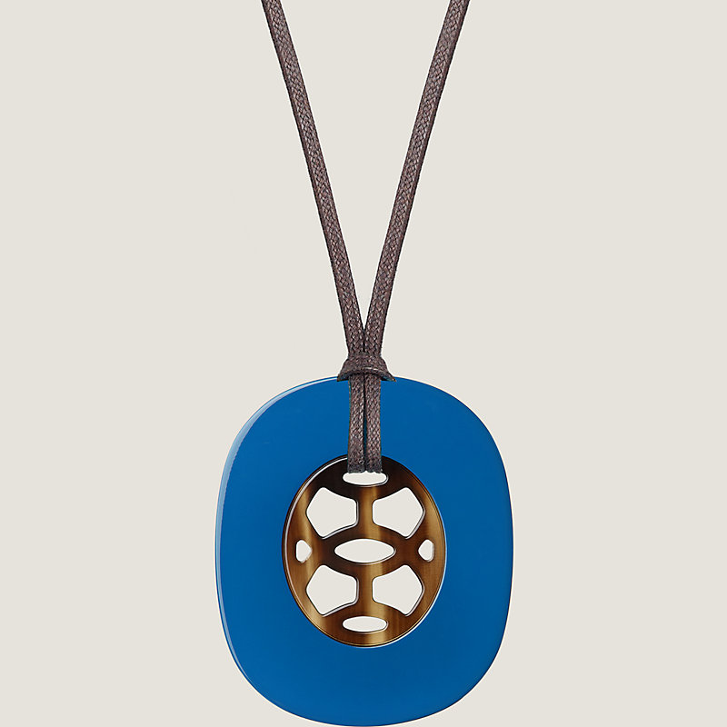 Pendant in lacquered buffalo horn with adjustable waxed cotton strap.