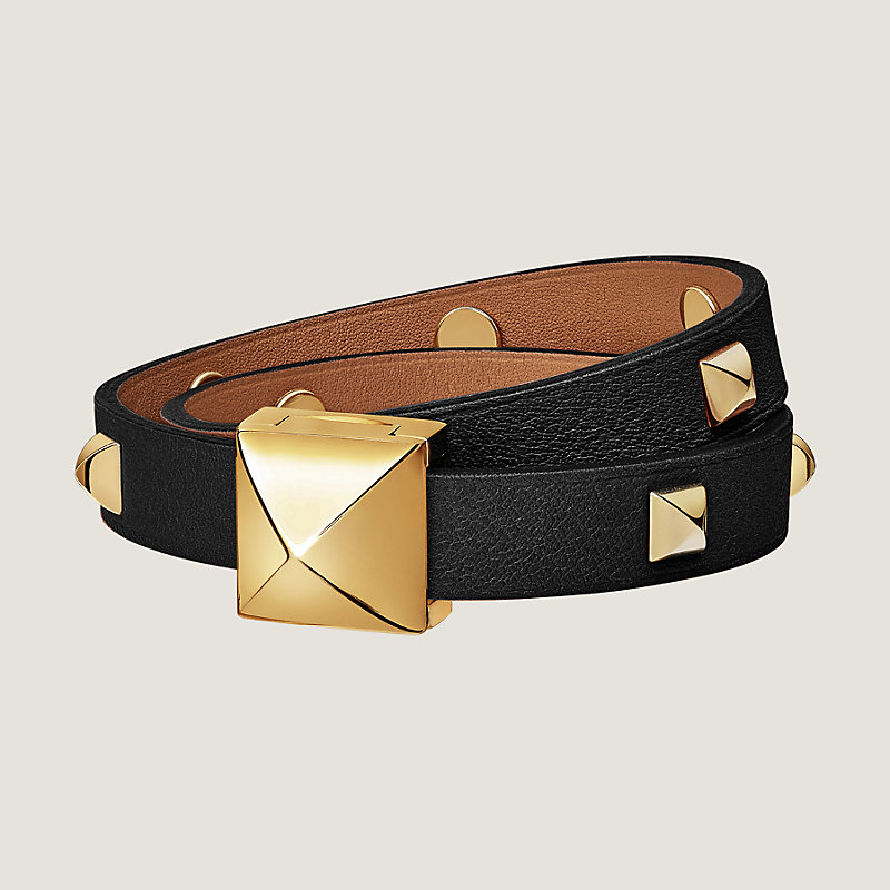 Studded double tour bracelet in Swift calfskin with gold plated hardware