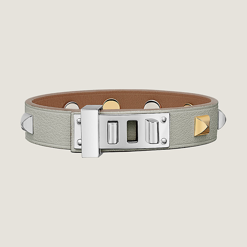 Bracelet in Swift calfskin decorated with square studs and palladium plated hardware