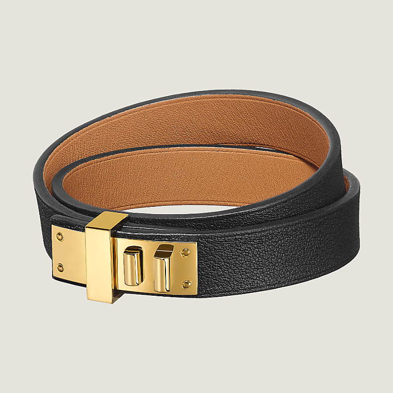 Double tour bracelet in Swift calfskin with gold plated hardware