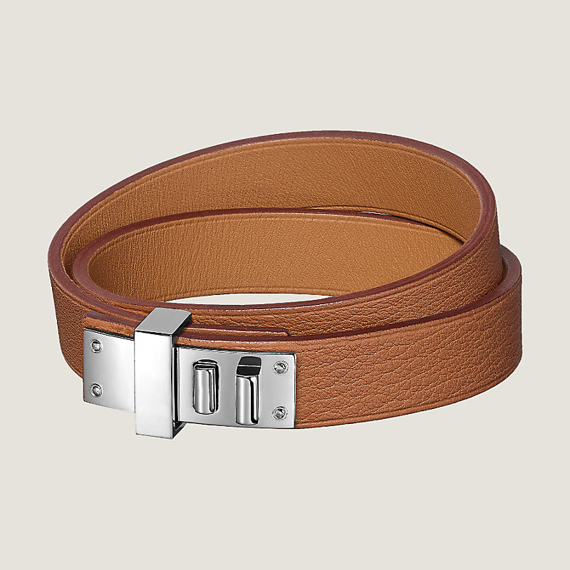 Double tour bracelet in Swift calfskin with palladium plated hardware