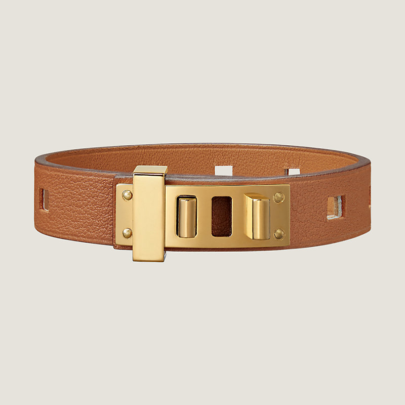 Hermes bracelet in Swift calfskin decorated with square perforations, gold plated hardware