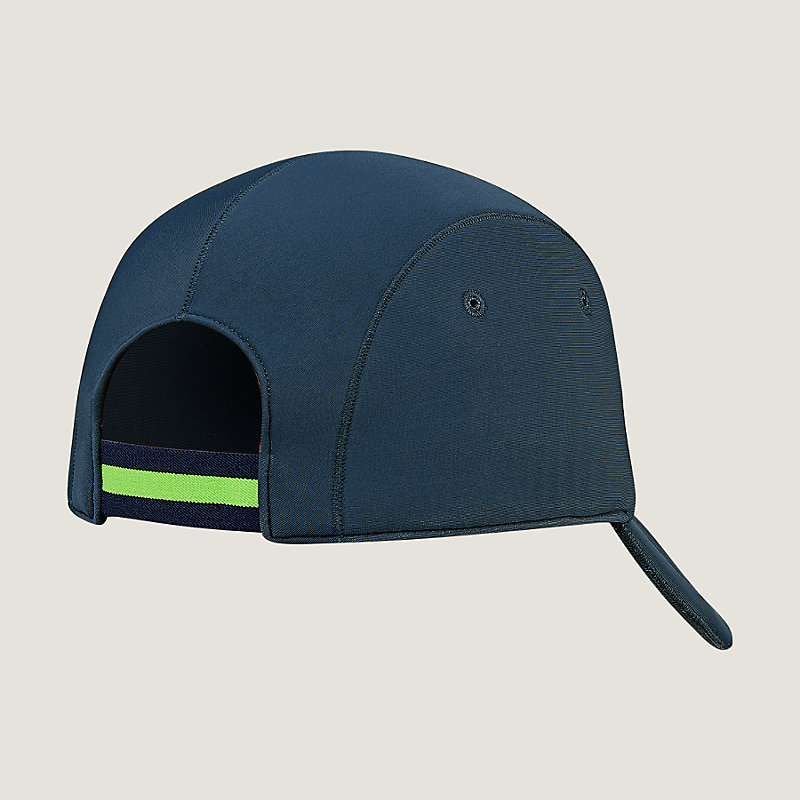 Cap in "24" embroidered neoprene, striped elastic and "Hermes" embroidery