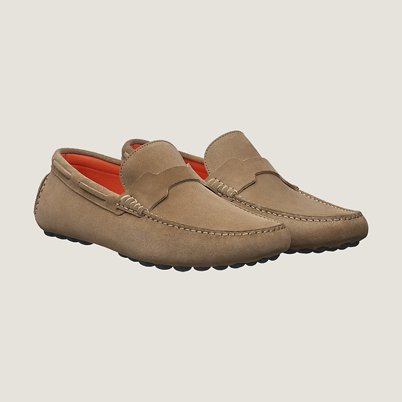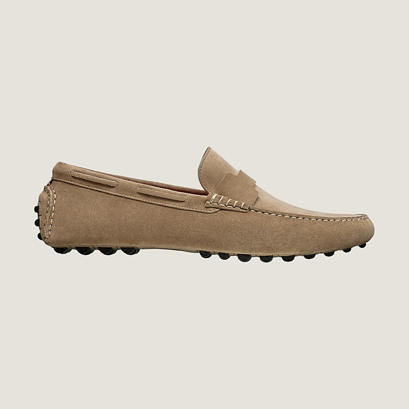 Hermes suede calfskin driving loafers, hand-sewn upper and rubber sole
