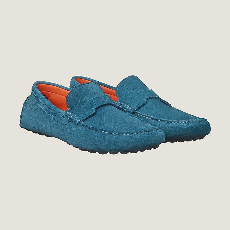 Hermes suede calfskin driving loafers, hand-sewn upper and rubber sole