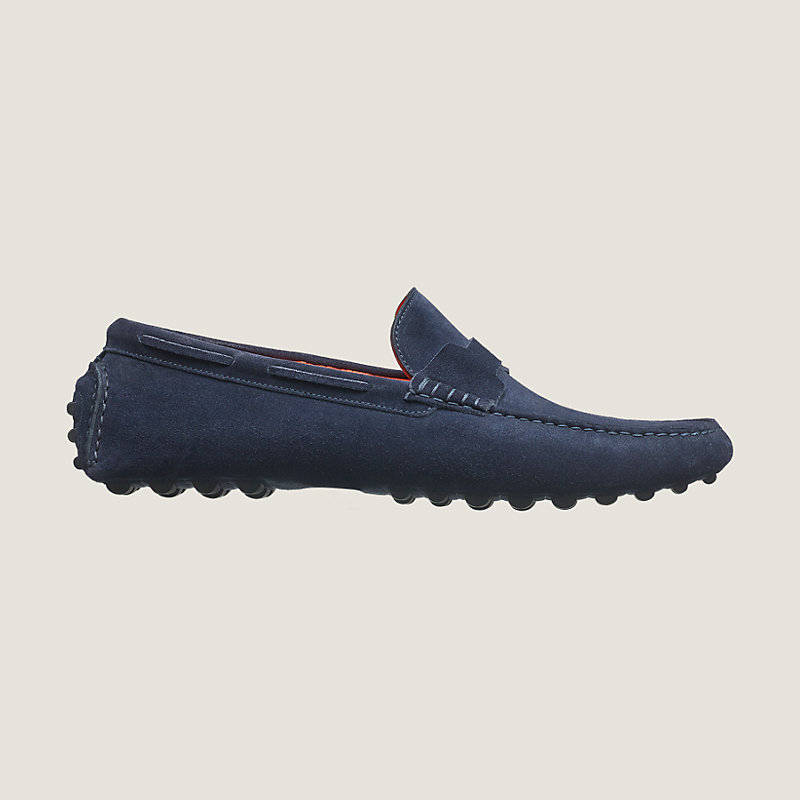 Hermes suede calfskin driving loafers, hand-sewn upper and rubber sole
