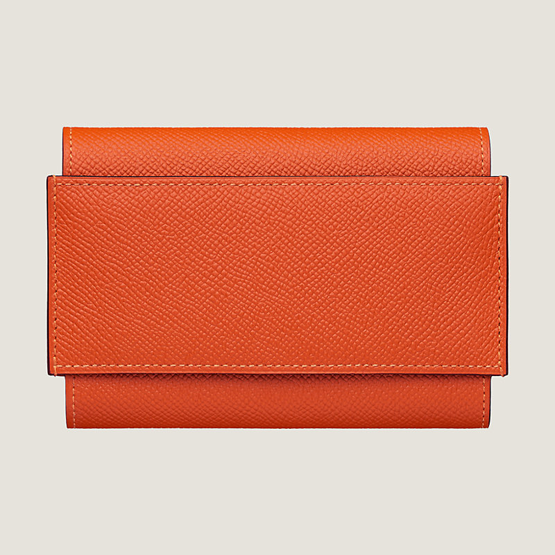 Compact wallet in Epsom calfskin with leather flap and loop