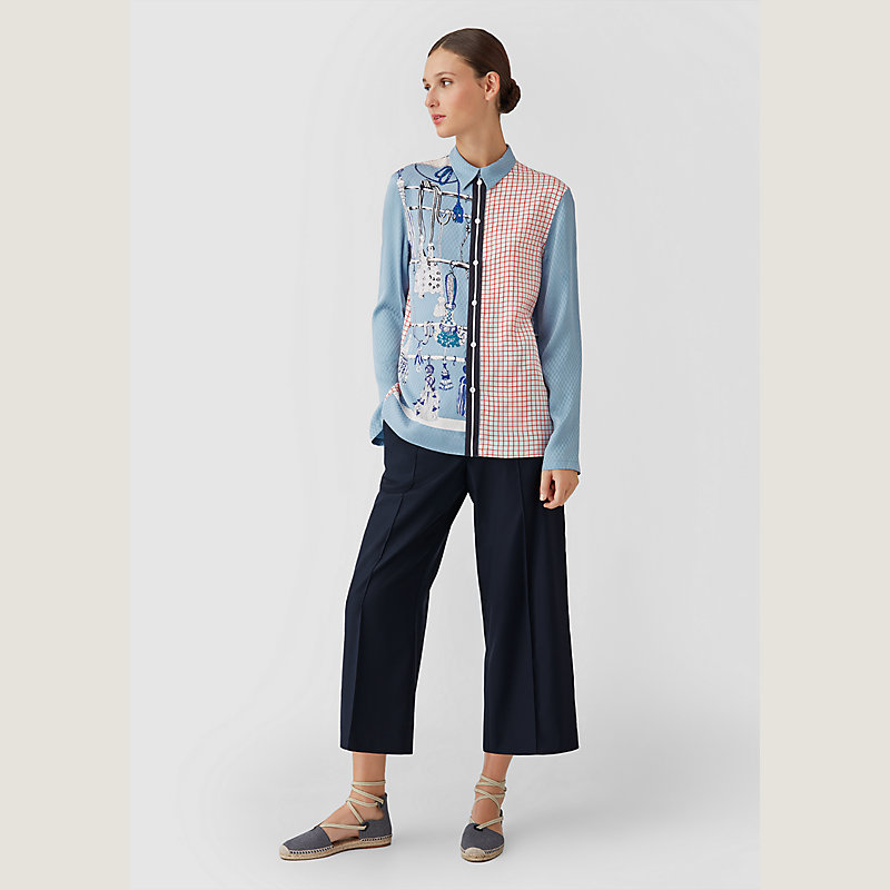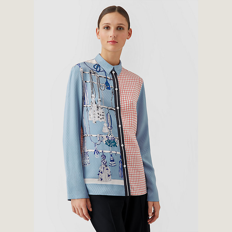 Hermes classic long sleeve shirt in "Passementerie Vichy" printed silk jacquard (100 % silk)