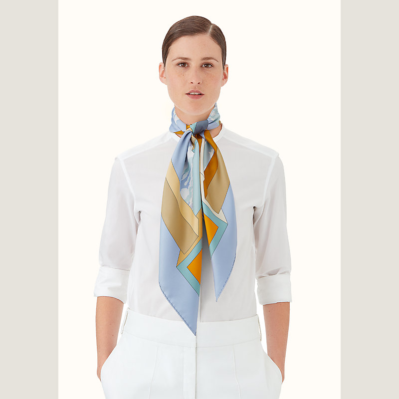 Preserve the beauty of your scarf by avoiding contact with rain, water and other chemicals. Store it flat and untied, and entrust it to a professional dry cleaner when needed.