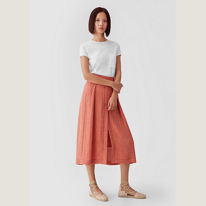 Hermes pleated skirt in chevron linen crepe (100% linen)