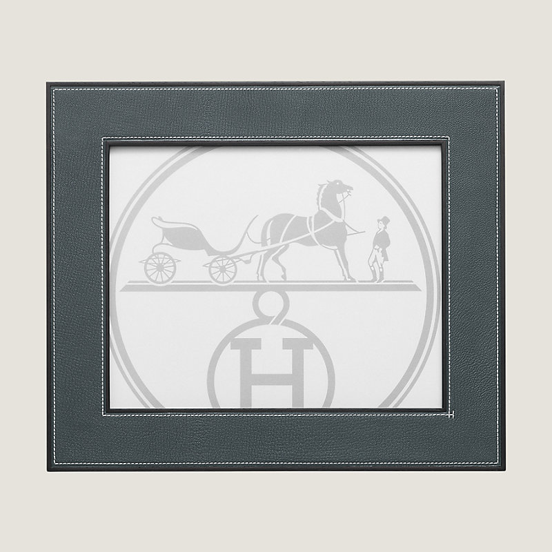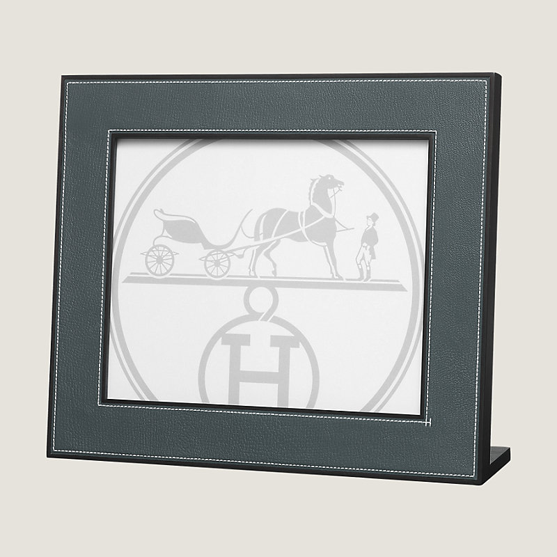 Hermes leather picture frame in goatskin with solid rosewood