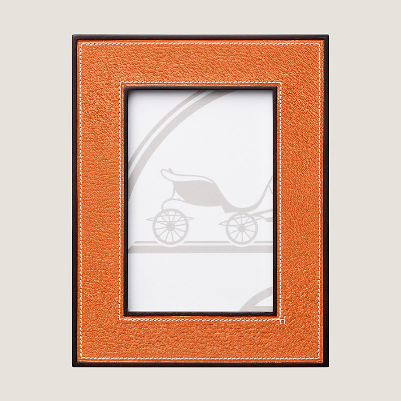 Hermes leather picture frame in goatskin with solid rosewood