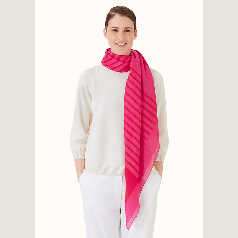 Preserve the beauty of your scarf by avoiding contact with rain, water and other chemicals. Store it flat and untied, and entrust it to a professional dry cleaner when needed.