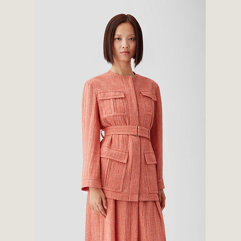 Hermes safari jacket in chevron linen crepe (100% linen)
