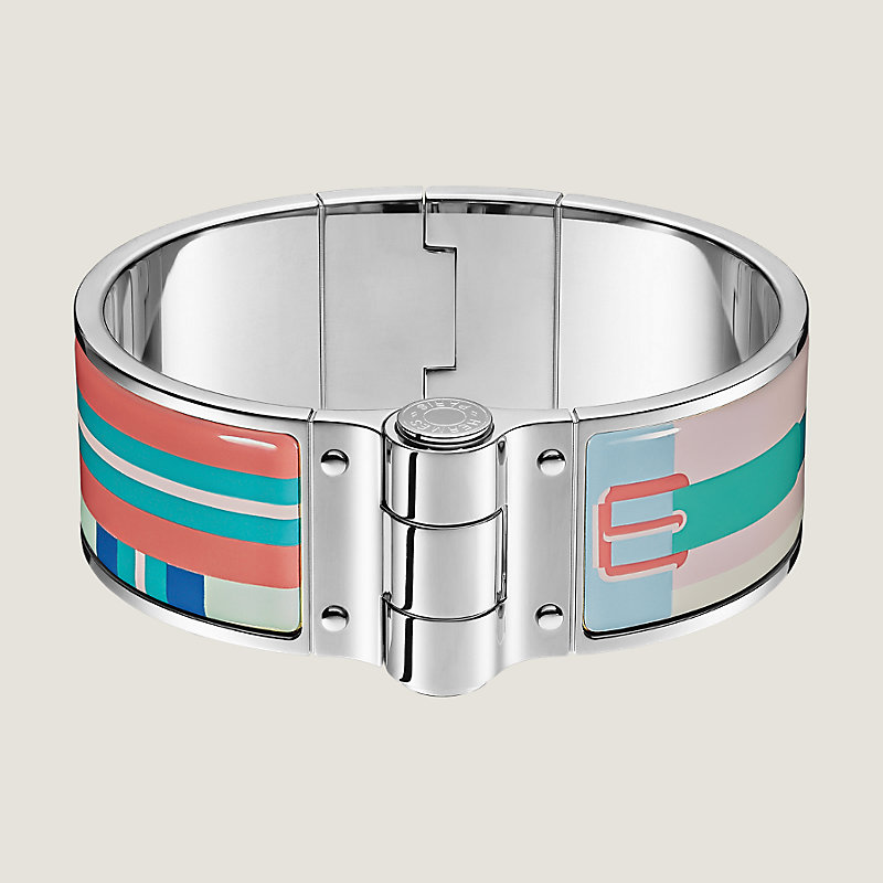 Wide hinged bracelet in printed enamel with palladium plated hardware