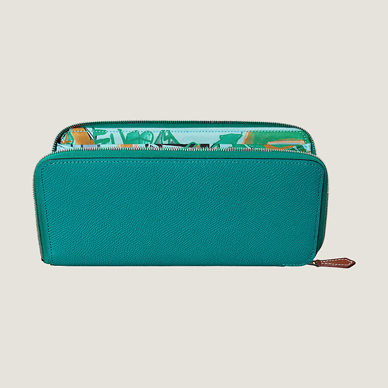 Hermes long wallet in Epsom and Barenia calfskin, silk lining with "Modernisme Tropical" print