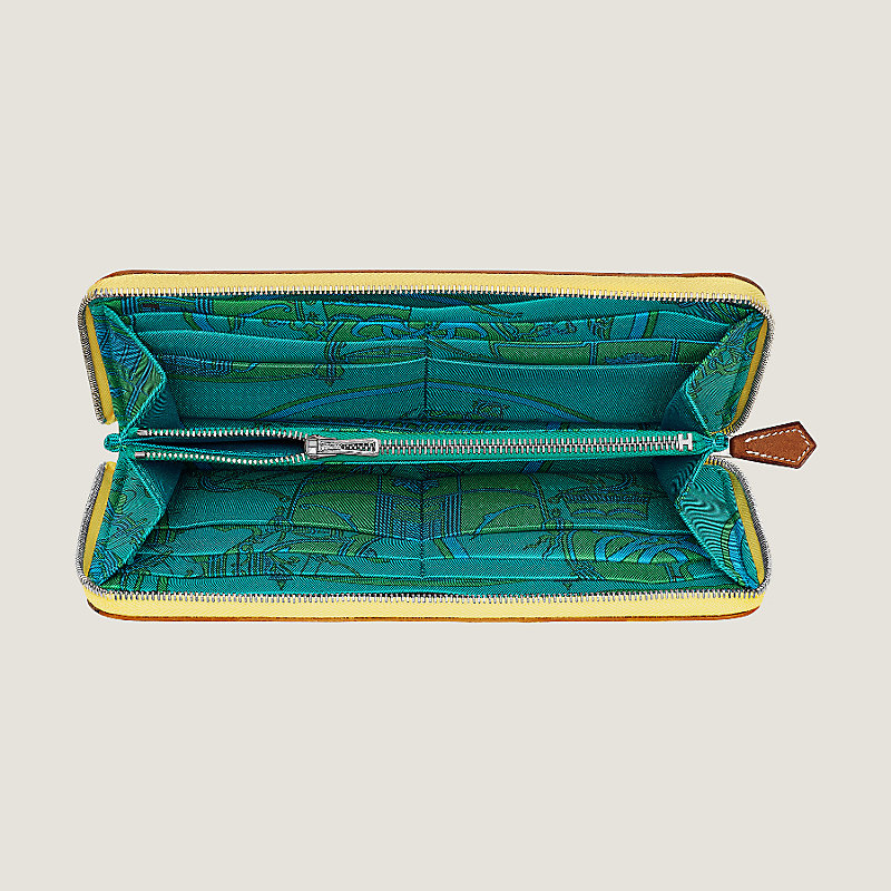 Hermes long wallet in Epsom and Barenia calfskin, silk lining with "Ex-Libris" print