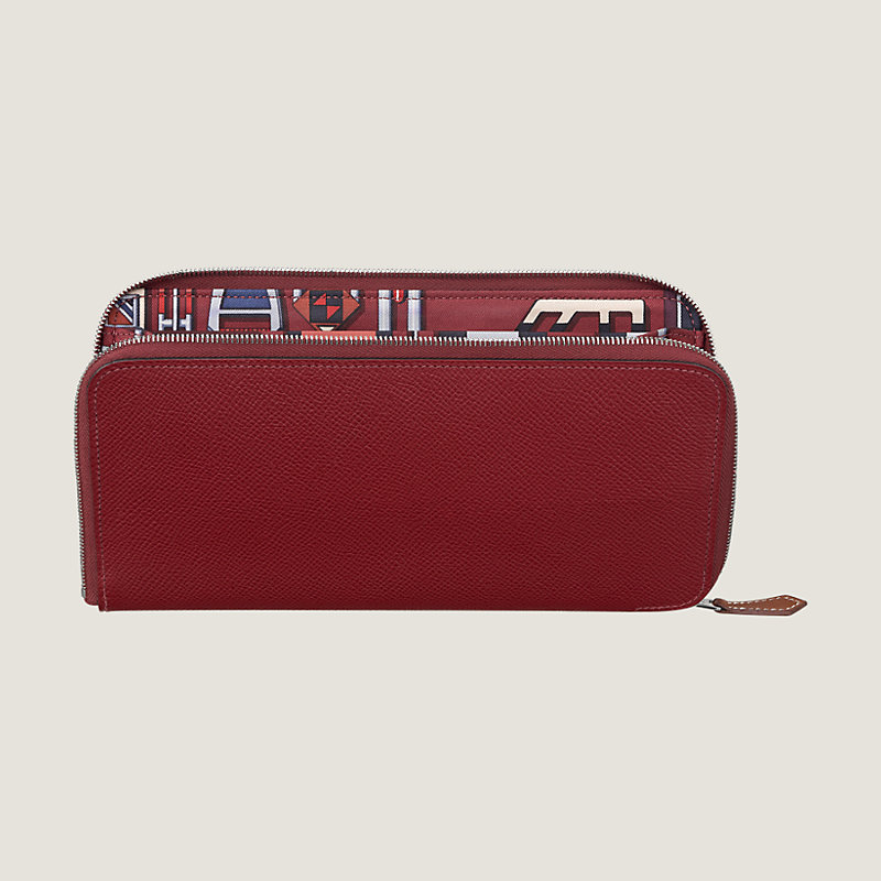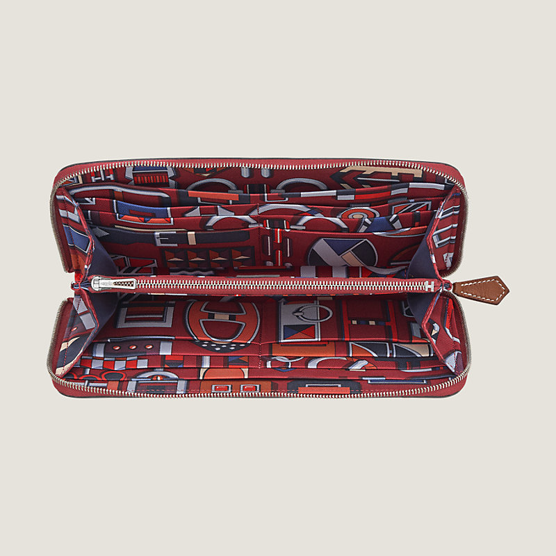 Hermes long wallet in Epsom and Barenia calfskin, silk lining with "Carre en Boucles" print