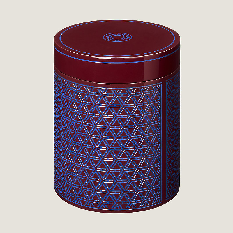 Hermes tea box in hand lacquered wood with engraved "Chevrons" pattern, inox inside