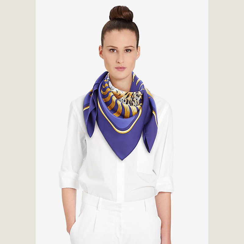 Preserve the beauty of your scarf by avoiding contact with rain, water and other chemicals. Store it flat and untied, and entrust it to a professional dry cleaner when needed.