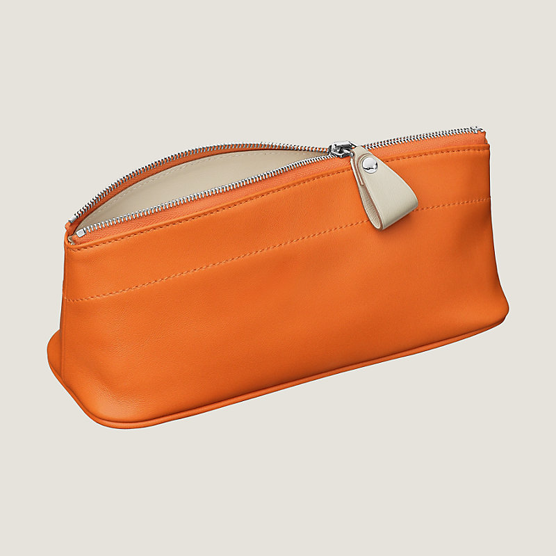 Pouch in Milo lambskin and Swift calfskin with contrasting Swift calfskin and canvas lining, silver and palladium plated zip closure