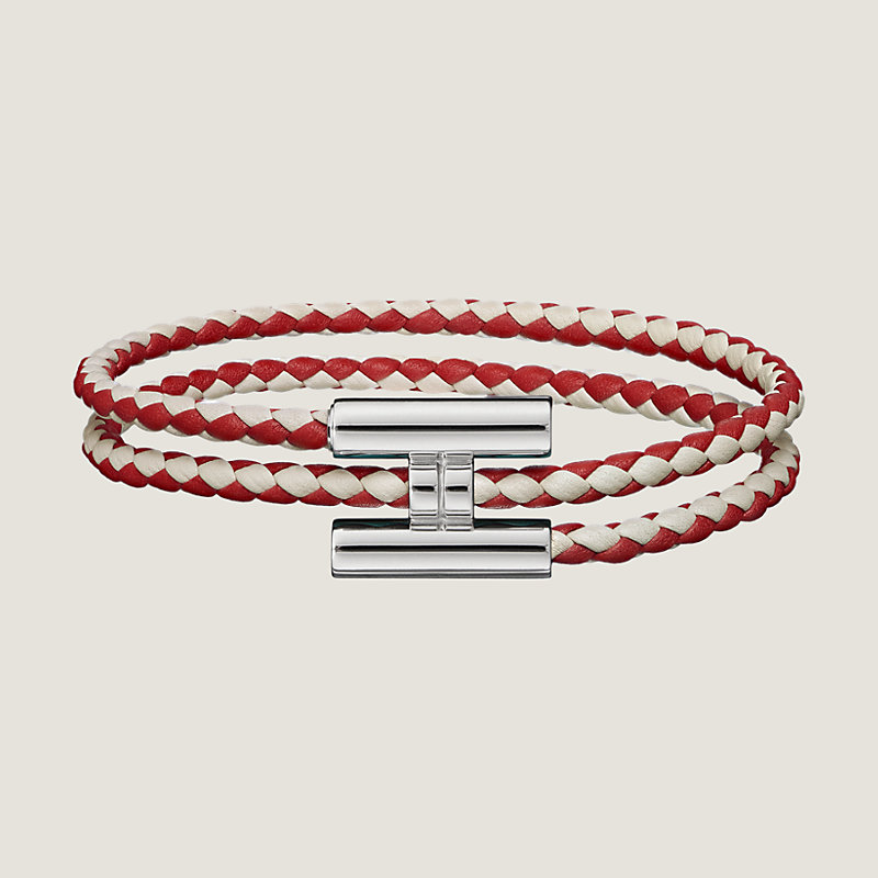 Bicolored bracelet in Swift calfskin, palladium plated hardware