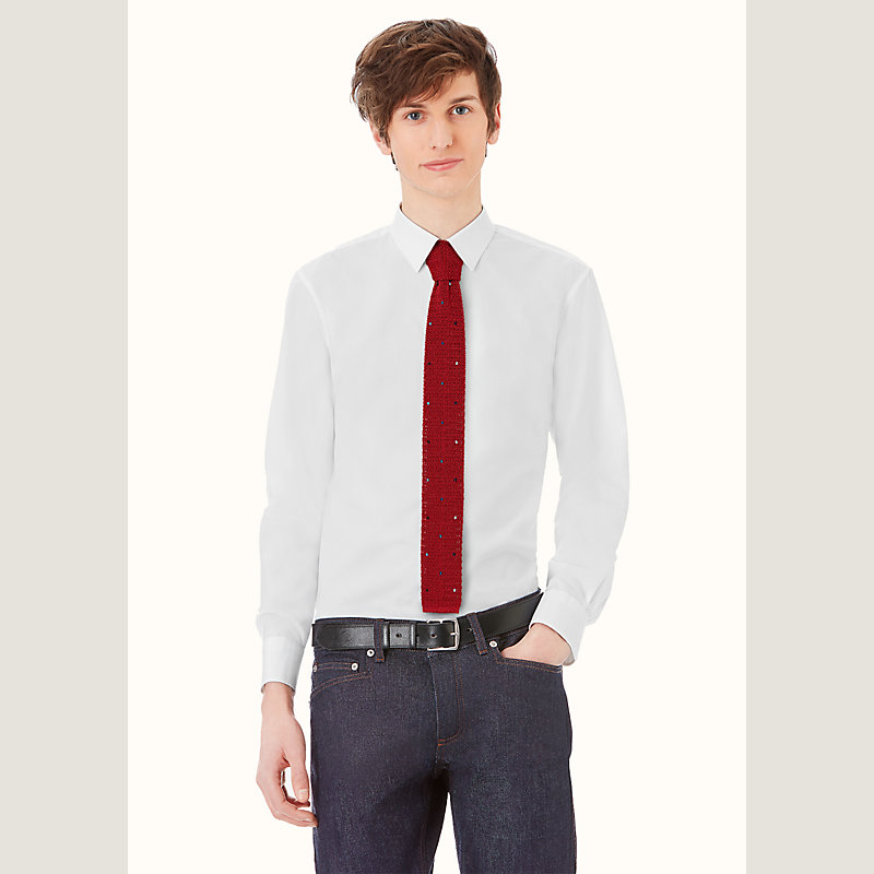 Polka dotted tie in hand-folded and hand-embroidered knit silk tie (100% silk)
