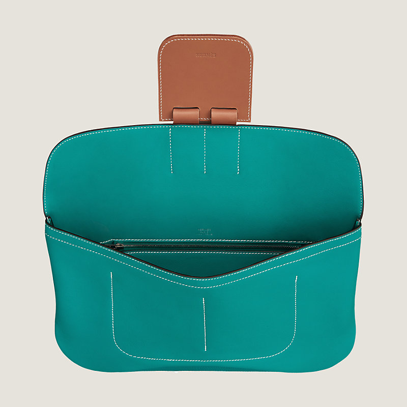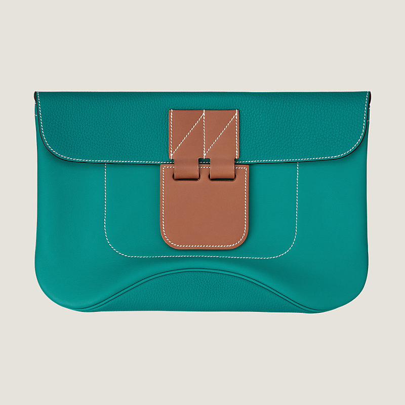 Hermes clutch in Swift calfskin, Hunter cowhide and taurillon Clemence leather