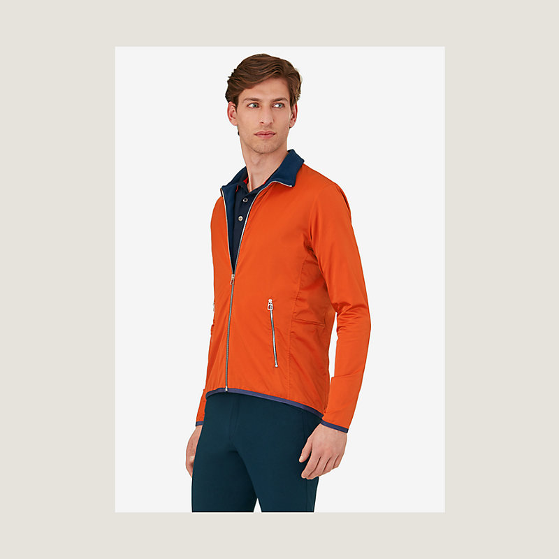 Hermes fleece jacket designed to provide heat and comfort. Flexible, breathable, and water resistant fabric, high collar and fit cut, zipped main opening and side pockets with tone-on-tone "H" pattern on the side.