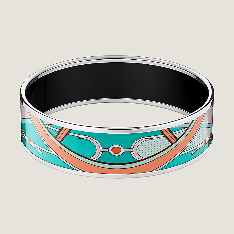 Wide bangle in printed enamel with palladium plated hardware